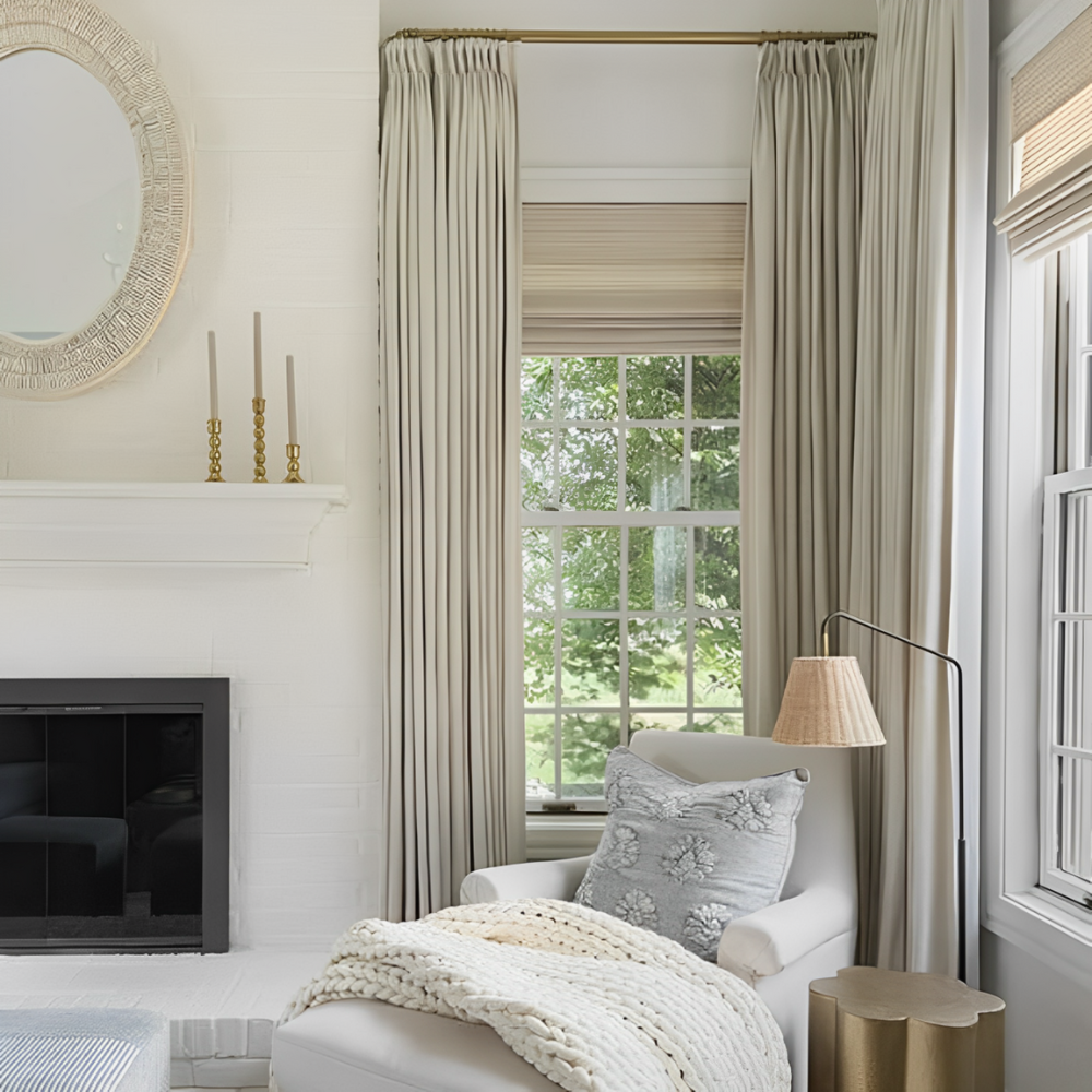 - When lowered, these shades filter sunlight perfectly, transforming the room into a canvas of subtle shadows and refined elegance.