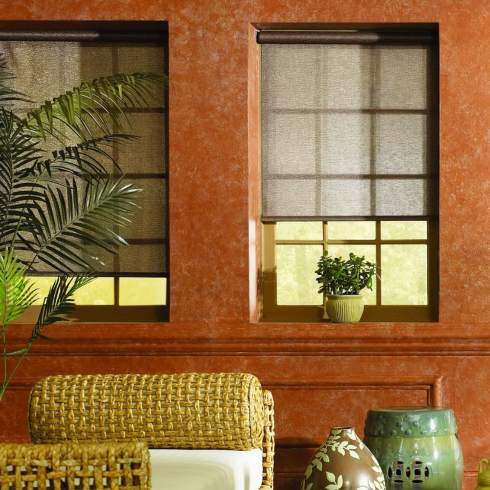 - In the contemporary space, sleek roller shades complement the minimalist decor. Their clean lines harmonize with modern furniture and neutral walls, while potted plants add natural warmth.