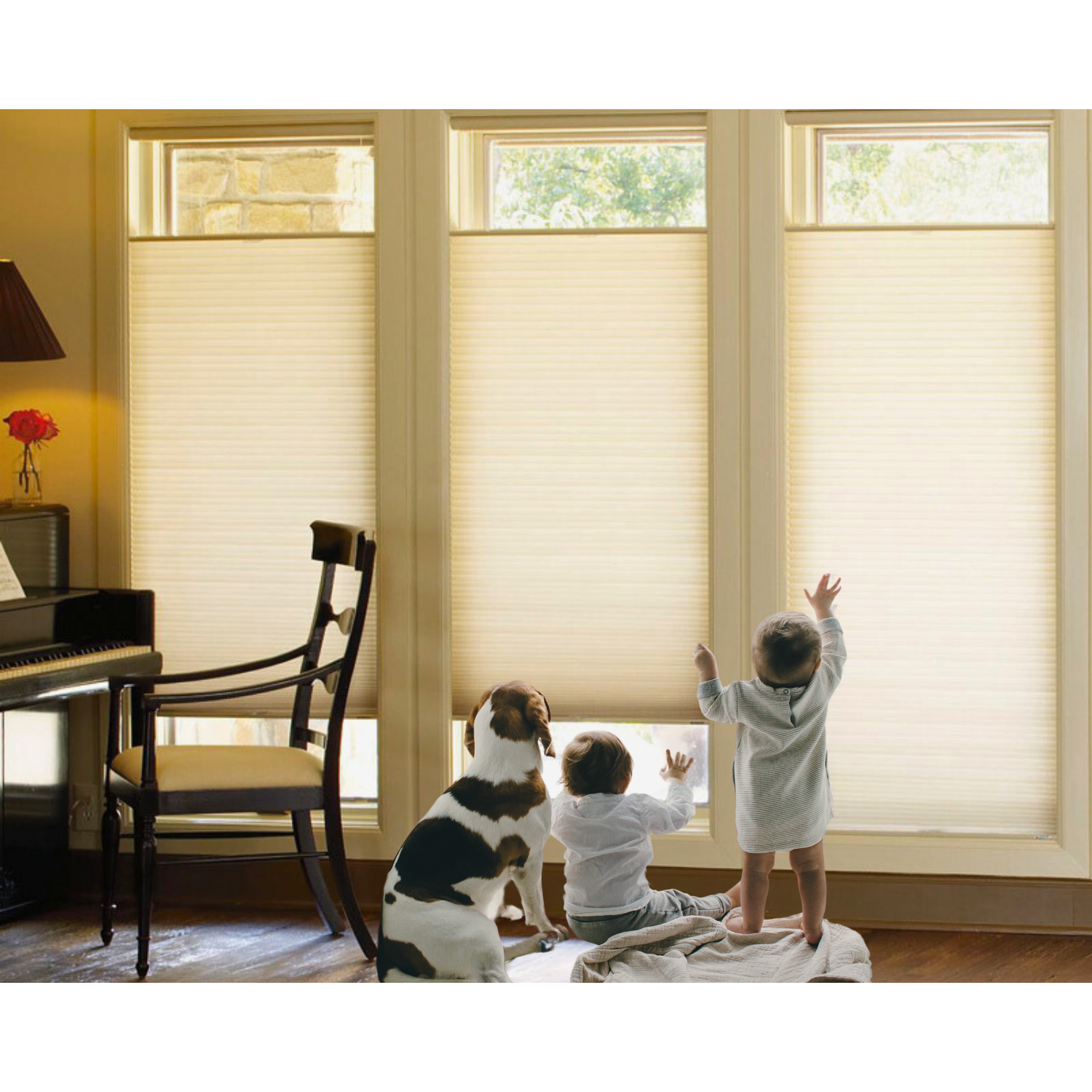 - Our electric cellular shades are powered by a 12V low voltage system, offering a safer alternative to standard high-voltage options.