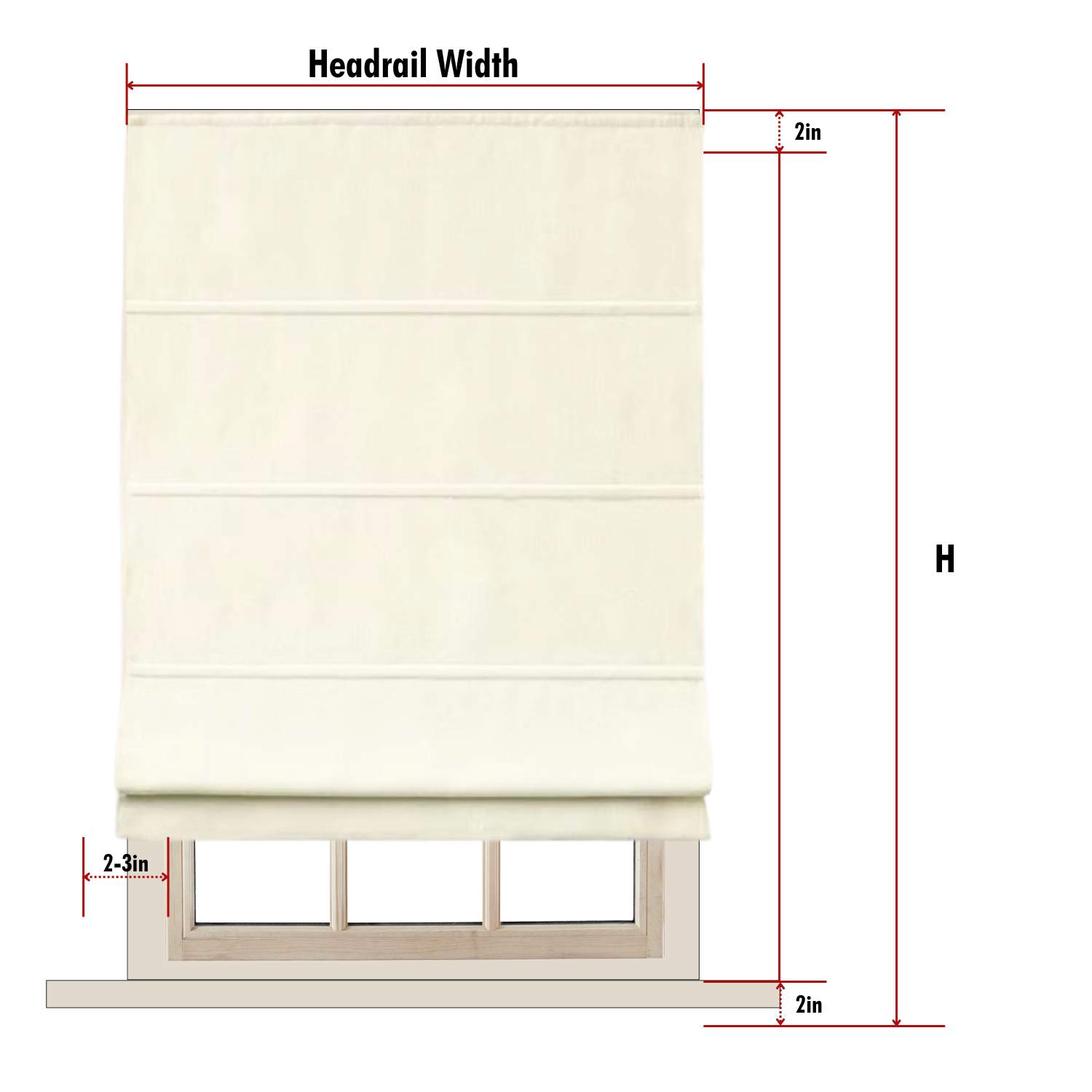 - Measure height to be covered from top to desired length. 2 inches overlap on each side of window is recommended for optimum light control and privacy.