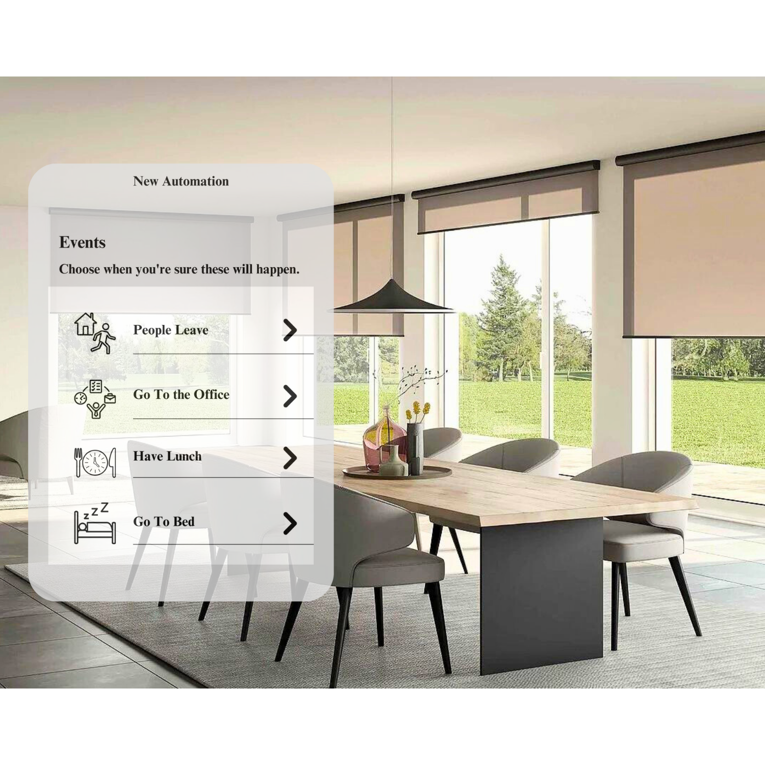 - Our electric roller shades feature intelligent presets that seamlessly integrate with your daily routines through automation.